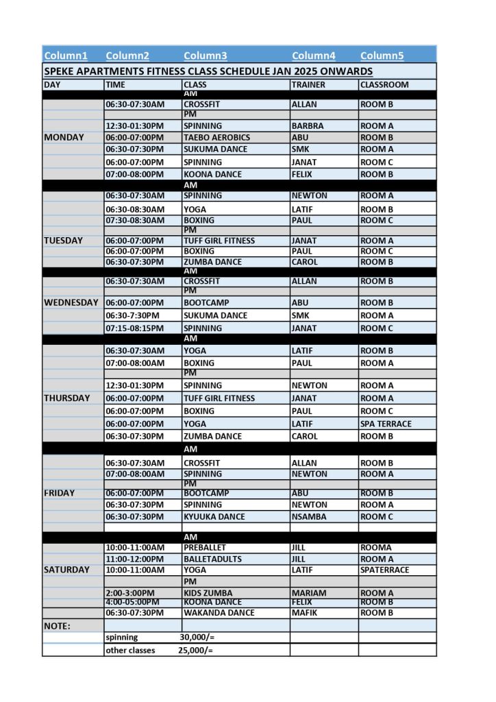 | Swimming Pool (Adults) | Ush 30,000 |